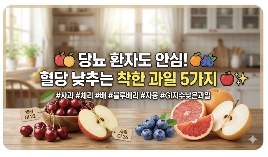 결론부터 말씀드리면, 과일은 종류를 잘 고르고 먹는 방법만 지키면 오히려 혈당 조절과 혈관 건강에 큰 도움을 주는 훌륭한 파트너가 됩니다.오늘은 혈당 지수 GI 를 바탕으로 당뇨 환자나 혈당 스파이크가 걱정되는 분들도 마음 편히 즐길 수 있는 과일 5가지를 자세히 살펴보겠습니다.